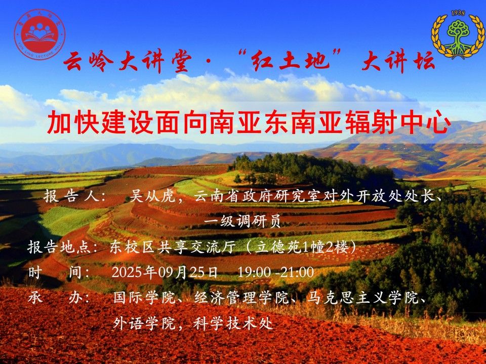 9月25日“紅土地”大講堂:加快建設(shè)面向南亞東南亞輻射中心