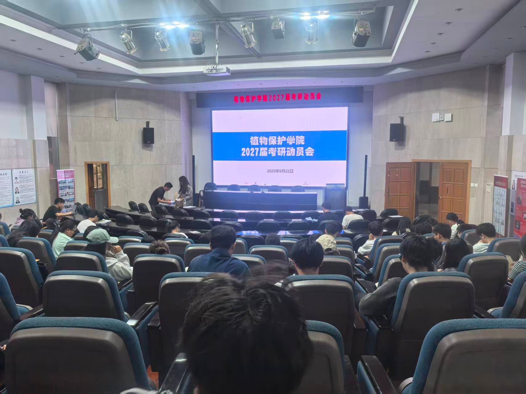 本站消息 為幫助2027屆本科生進(jìn)一步樹立正確就業(yè)觀和擇業(yè)觀,提高2027屆本科生就業(yè)競(jìng)爭(zhēng)力,9月22日下午,植保院在學(xué)院報(bào)告廳開展2027屆本科生考研動(dòng)員會(huì)。學(xué)院黨委副書記李春艷、學(xué)工辦相關(guān)教師,2027屆本科班學(xué)生參加動(dòng)員大會(huì)。動(dòng)員會(huì)特邀考研指導(dǎo)專家陽若姝主講。