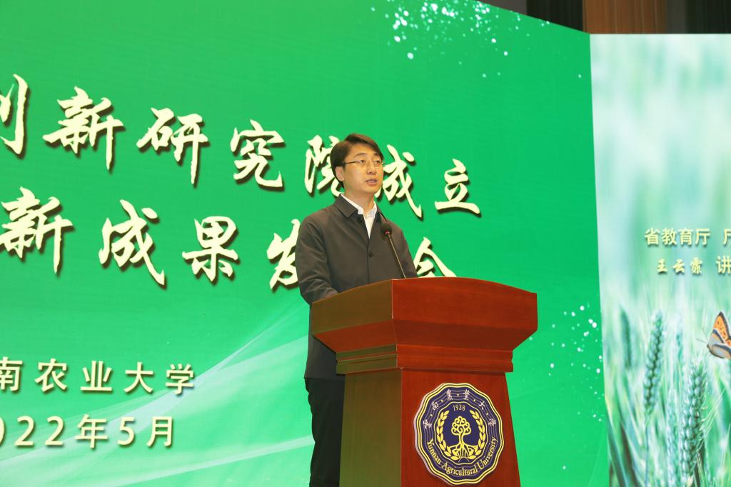 省教育廳廳長王云霏、省農(nóng)業(yè)農(nóng)村廳廳長謝暉、省科技廳巡視員王立新分別作了會議講話,表示將一如既往鼓勵支持云南農(nóng)業(yè)大學(xué),希望云南種業(yè)創(chuàng)新研究院能依托云南農(nóng)業(yè)大學(xué)產(chǎn)、學(xué)、研聯(lián)動優(yōu)勢,圍繞種子產(chǎn)業(yè)鏈關(guān)鍵核心技術(shù),搭建公共平臺,匯集科研力量,張榜聯(lián)合攻關(guān),激發(fā)創(chuàng)新活力,全面加強種業(yè)科技原始創(chuàng)新,在云南糧食安全和產(chǎn)業(yè)發(fā)展方面作出農(nóng)業(yè)高等院校的貢獻(xiàn),有力助推種業(yè)發(fā)展邁上新臺階。