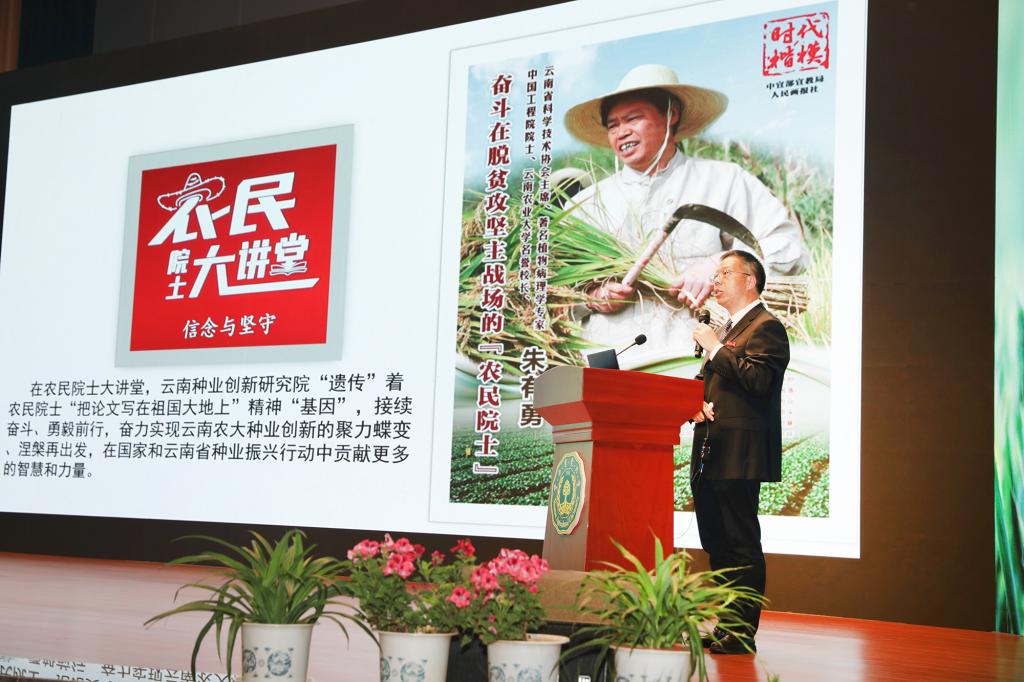 朱有勇介紹了幾十年來學(xué)校在種業(yè)創(chuàng)新研究上的艱辛探索和取得的輝煌成績,他表示,有了好的“種子”,更要在“耕種”上下功夫,要探索更加科學(xué)高效的種植方式,真正把論文寫在祖國大地上。