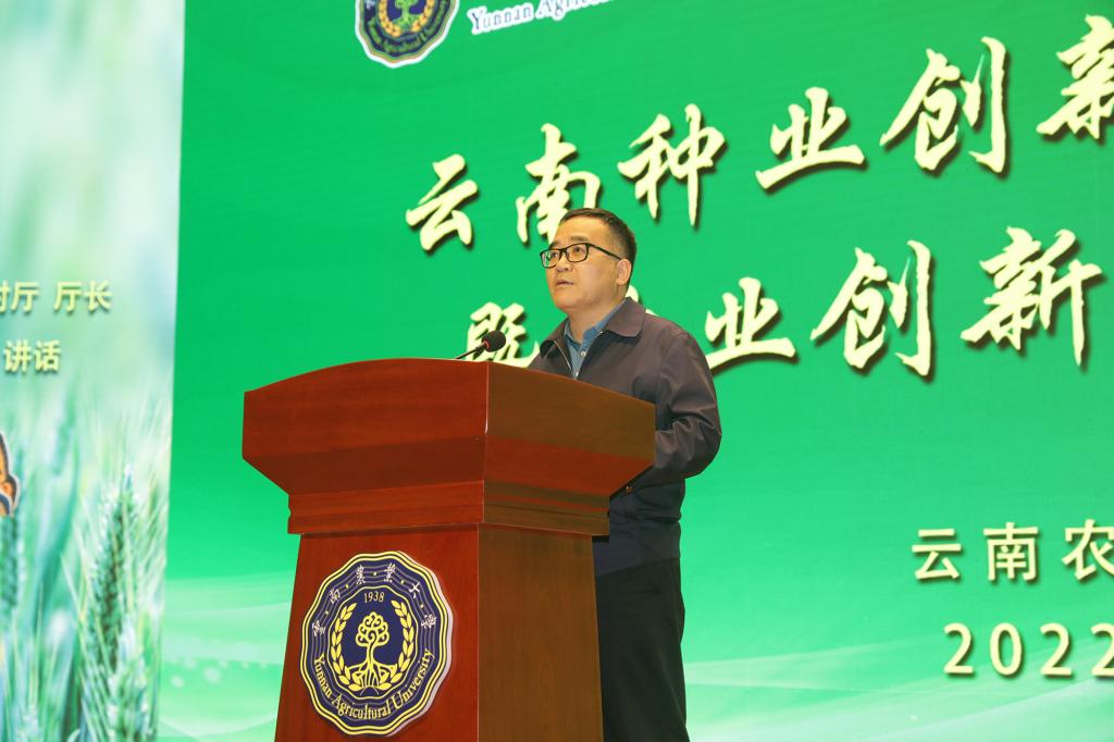 本站消息 2022年5月21日下午,云南種業(yè)創(chuàng)新研究院成立暨種業(yè)創(chuàng)新成果發(fā)布會在學(xué)校校友會堂舉行。“時代楷模”、中國工程院院士、學(xué)校名譽校長朱有勇院士,省教育廳、省科技廳、省農(nóng)業(yè)農(nóng)村廳、省鄉(xiāng)村振興局、省林草局、省農(nóng)科院、省林科院、西南林業(yè)大學(xué)等有關(guān)單位領(lǐng)導(dǎo),校黨委書記黎素梅、校長李永和以及相關(guān)企業(yè)負(fù)責(zé)人出席會議,學(xué)校其他校領(lǐng)導(dǎo)及部分師生代表參加會議。